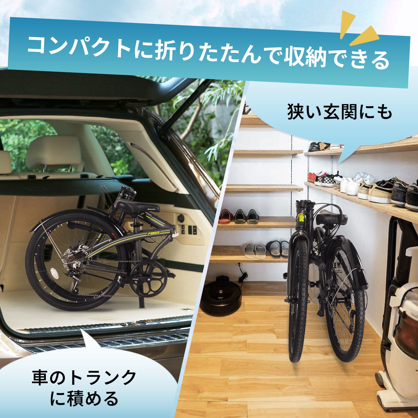 - 【組み立て・収納簡単】99%完成品なので1分内簡単に組み立てられます。折り畳み自転車なので、車のトランクや家の狭い玄関にも省ペースで収納ができて楽々!数秒でコンパクトができて携帯性に優れています。オフィス、バス、電車に簡単に持ち運ぶことができて、通勤に最適なモデル!