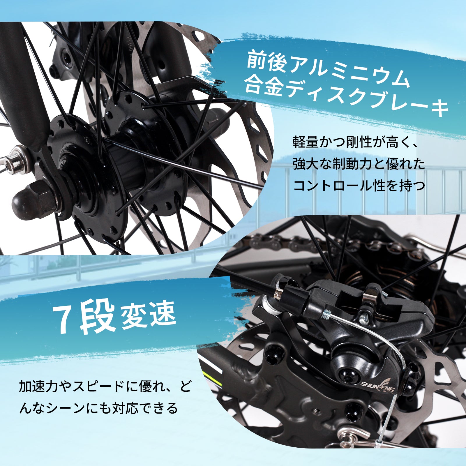 - 【7段変速・前後Vブレーキ】有名ブランドの7速トランスミッションを搭載。正確な変速とペダリングパワーの低減により、強力な制動力、高効率、長寿命を実現。なだらかな坂道にも、平坦な市街地にもより快適なライディング体験を提供し、旅行や通勤通学、買い物などに便利な折りたたみ自転車です。